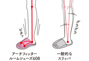 足が前に滑ったり、ペタペタ音がしない軽やかな歩きになります。